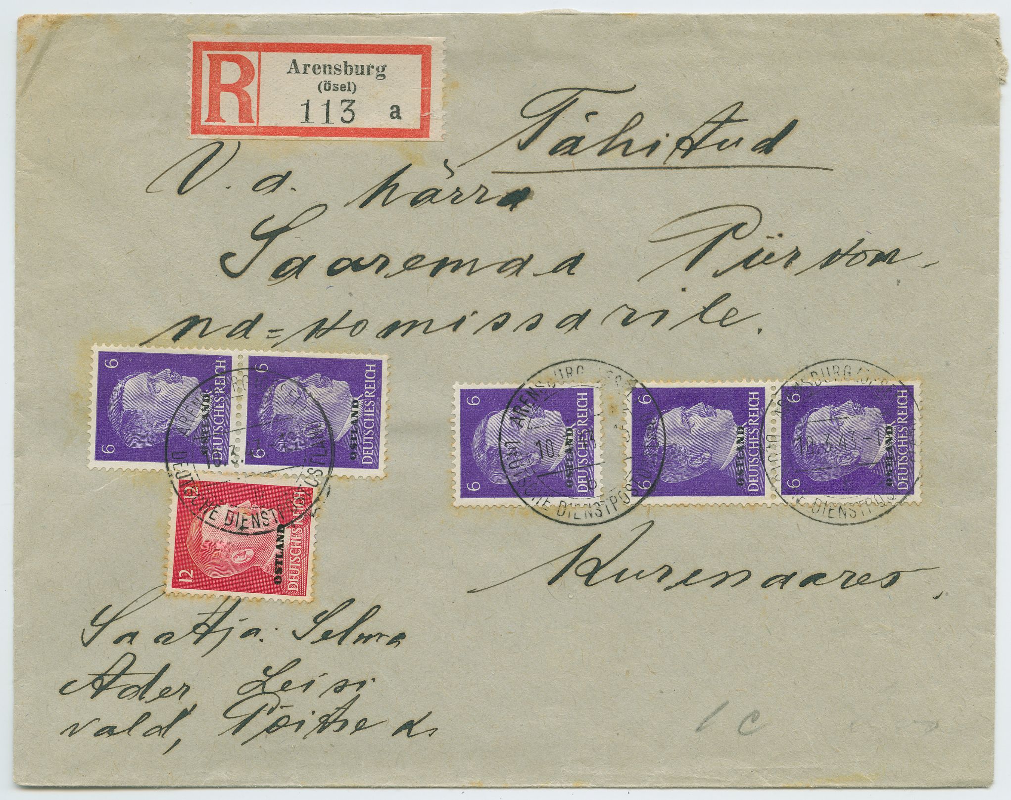 Postal rate 42 rpf: 12 rpf inland letter + 30 rpf registering.